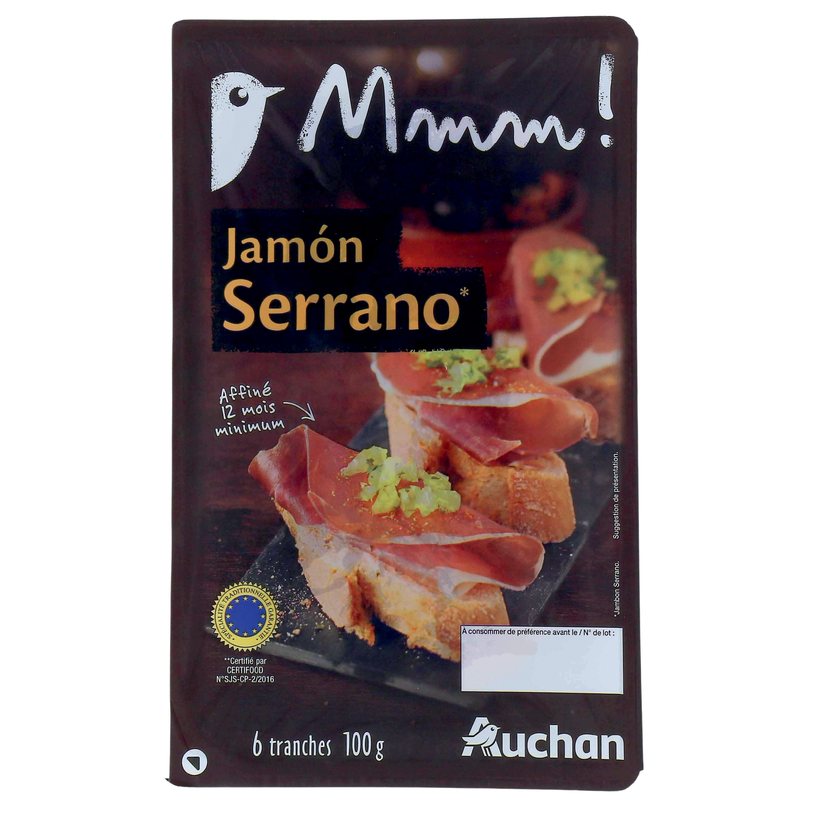 Bonjour, Nous vous remercions d'avoir partagé votre avis sur notre AUCHAN MMM! Jambon Serrano 12 mois d'affinage 6 tranches 100g. Nous sommes désolés d'apprendre que vous avez trouvé nos tranches trop fines et le jambon un peu salé. Nous prenons note de votre remarque concernant le prix et la quantité. Vos commentaires sont importants pour nous et nous aident à améliorer nos produits. Bien cordialement,