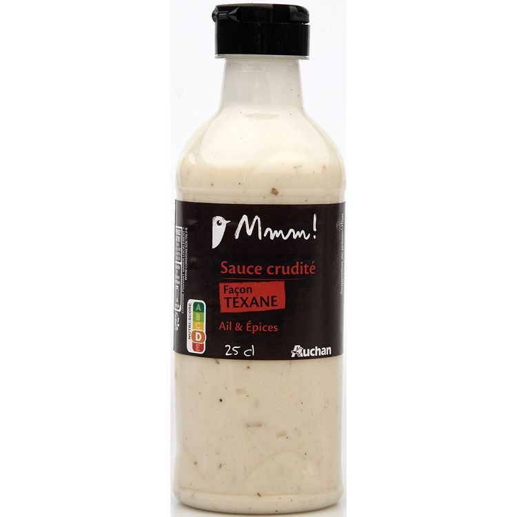 Ingrédients : Eau, huile de colza 30%,vinaigre d'alcool, vinaigre de vin blanc (contient des SULFITES), sucre, jaunes d'ŒUFS, sel, oignon 1%,  MOUTARDE de Dijon (eau, graines de MOUTARDE, vinaigre d'alcool, sel, conservateur : diSULFITE de potassium, acidifiant : acide citrique), amidon modifié de pomme de terre, jus de citron concentré, ail 0,5%, LAIT entier en poudre, épaississant : gomme xanthane, mélange d'épices 0,25%, arôme naturel d'oignon 0,20%, acidifiant : acide lactique, arôme naturel d'ail 0,1%, ciboulette, conservateur : sorbate de potassium.