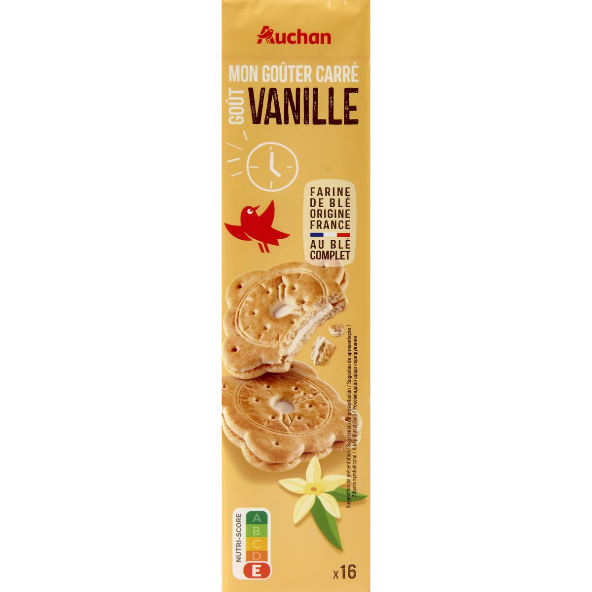 Craquez pour Mon Goûter Carré Goût Vanille Auchan : des biscuits au blé complet, parfaits pour un goûter gourmand et équilibré. Avec leur délicieux goût vanille et leur format pratique en portions individuelles, ils sont idéaux pour accompagner les petits et les grands à tout moment de la journée !