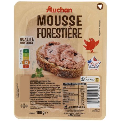 Cette mousse de foie forestière à l'odeur et au goût caractéristique d'un mélange de bolets et champignons noirs, est réalisée à partir d'une pâte fine et homogène de porc français. Facile à étaler, pour pleinement profiter des saveurs originales de cette charcuterie.