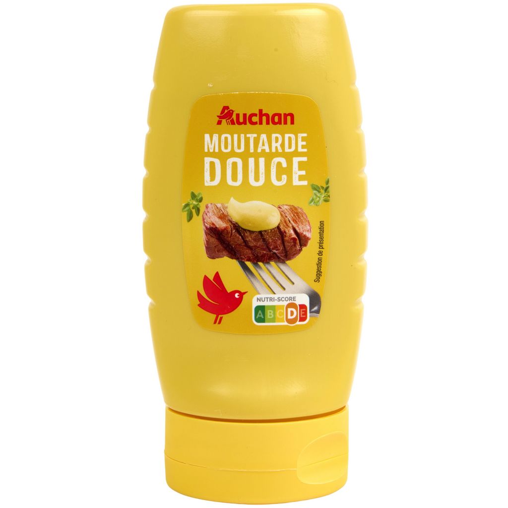 Appréciez la moutarde douce Auchan pour sa douceur et son onctuosité, en format squeeze pratique à utiliser.