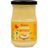 Ingrédients : Eau , huile de tournesol , graines de MOUTARDE , vinaigre d'alcool , sel , épaississant : gomme xanthane , conservateur : DISULFITE de potassium , acidifiant : acide citrique ,sucre,épice,arômes.