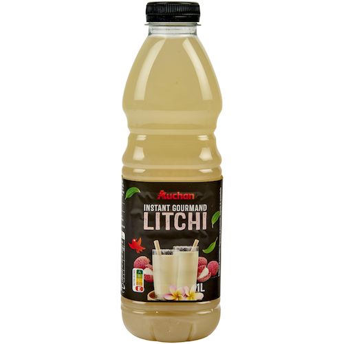 Ingrédients : Eau, purée de goyave blanche (10%), sucre, jus de citron à base de concentré, purée de litchi (3%), antioxydant: acide ascorbique, arômenaturel de litchi, arôme naturel.