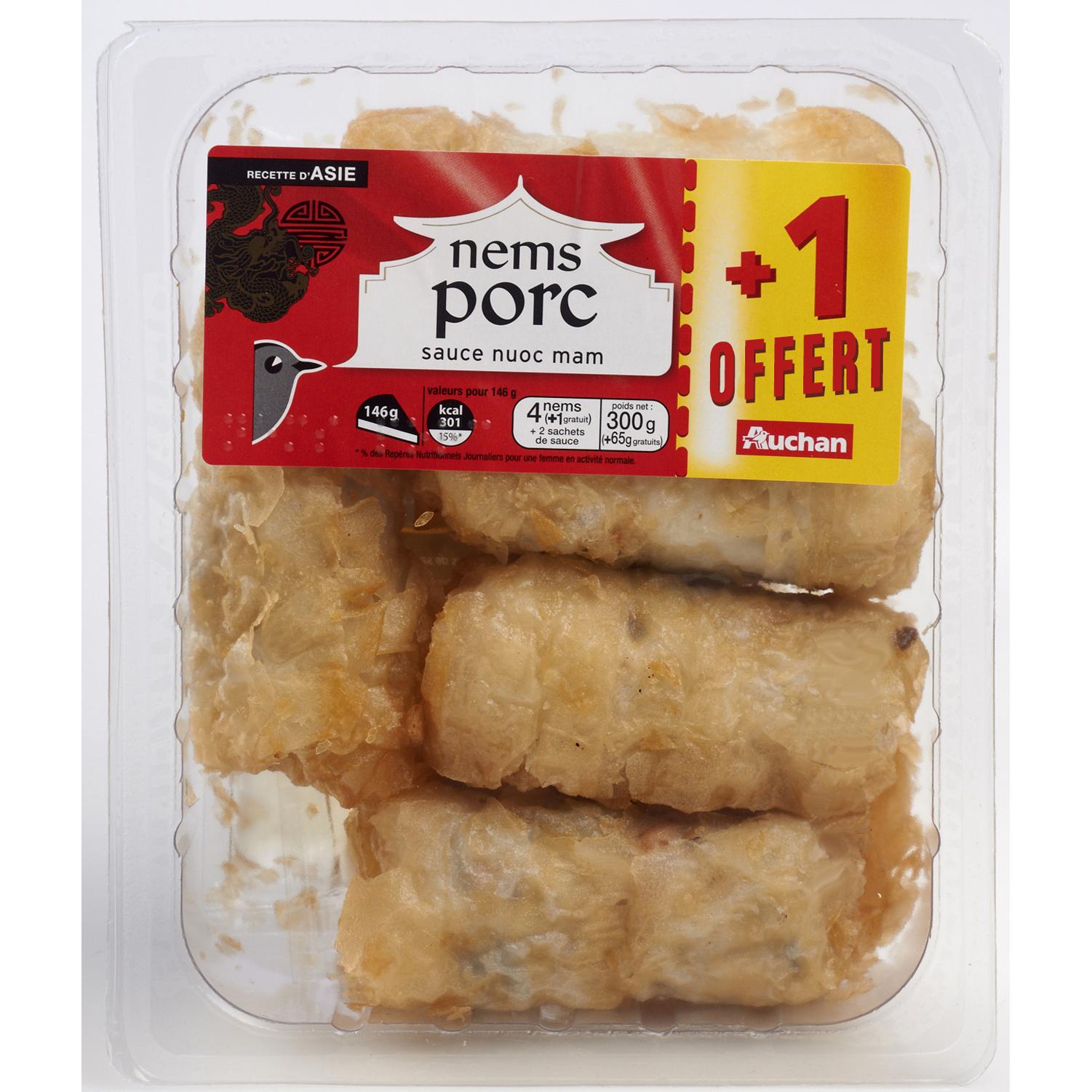 4 nems au porc (+1 gratuit) avec sauce nuoc mam, décongelés.