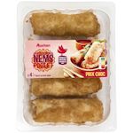 Ingrédients : Nems poulet (85,7%) : eau, farine de riz 13,2%, vermicelle de pois réhydraté, oignons, viande de poulet 10,2% (origine : France), carottes, protéine de soja texturée réhydratée, germes de haricot mungo, champignon noir réhydraté, farine de perles de tapioca, sel, menthe douce 0,3%, poivre blanc. Friture : Huile de tournesol.Sauce au nuoc-mâm (14,3%) : eau, sucre, vinaigre d'alcool, sel, sauce poisson 0,2% (poisson, sel, eau), sauce soja (eau, graine de soja, sel, farine de blé).Pourcentages exprimés sur le total de la recette. Traces éventuelles de crustacés, mollusques, lait, œufs, moutarde, céleri et graines de sésame.