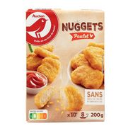Les nuggets de poulet AUCHAN, à base de viande de poulet traitée en salaison, sont enrobés d'une délicieuse pâte à beignet croustillante. à cuire à la poèle ou au four, les nuggets ravieront les petits comme les grands.