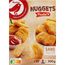 Viande de poulet traitée en salaison : 70 % (viande de poulet : 50 %, eau, fibres de BLÉ , dextrose de blé, protéines de BLÉ , sel, arôme naturel), panure : 30% (eau, farine de BLÉ , sel, levure, épices). Friture à l’huile de tournesol.