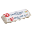 12 œufs de catégorie A de poules élevées en cage (code commençant par 3 sur l'œuf), datés du jour de ponte. Calibre moyen ou gros (Mention indiquée sur le couvercle de la boîte).