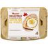 Ingrédients : 6 œufs de catégorie A de poules élevées au sol (code commençant par 2 sur l’œuf), datés du jour de ponte. Calibre moyen ou gros (mention indiquée sur le couvercle de la boîte). Pour accompagner la conversion des élevages, les oeufs contenus dans cette boîte peuvent être issus de poules élevées en plein air (code producteur commençant par 1).