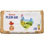 18 œufs de catégorie A de poules élevées en plein air (code commençant par 1 sur l’œuf).Calibre Moyen ou Gros.