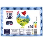 24 œufs de catégorie A de poules élevées en plein air (code commençant par 0 ou 1 sur l’œuf). Calibre moyen ou gros (mention indiquée sur le couvercle de la boite).