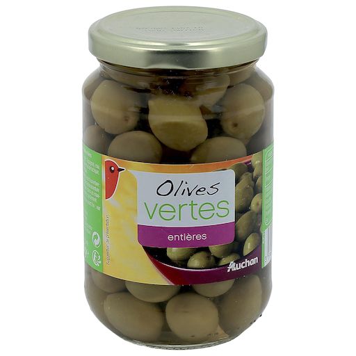 Des délicieuses olives vertes entières à la marque Auchan