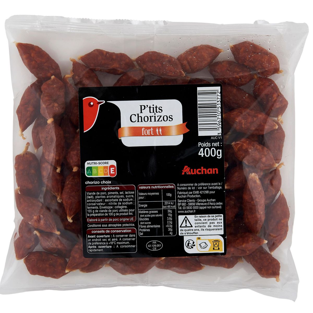 Ingrédients : Viande de porc, lactose (LAIT), sel, piments séchés en poudre (1,9 %), dextrose, plantes aromatiques, arômes, arôme de fumée, arômes naturels, conservateur : nitrite de sodium, ferments.Enveloppe : boyau collagénique.Traces éventuelles de fruits à coque. 160g de viande de porc utilisés pour la préparation de 100g de produit fini.Elaboré à partir de porc origine France.