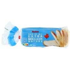 24 tranches de pain de mie extra moelleux nature AUCHAN, avec de la farine de blé origine France, à manger en sucré ou salé.