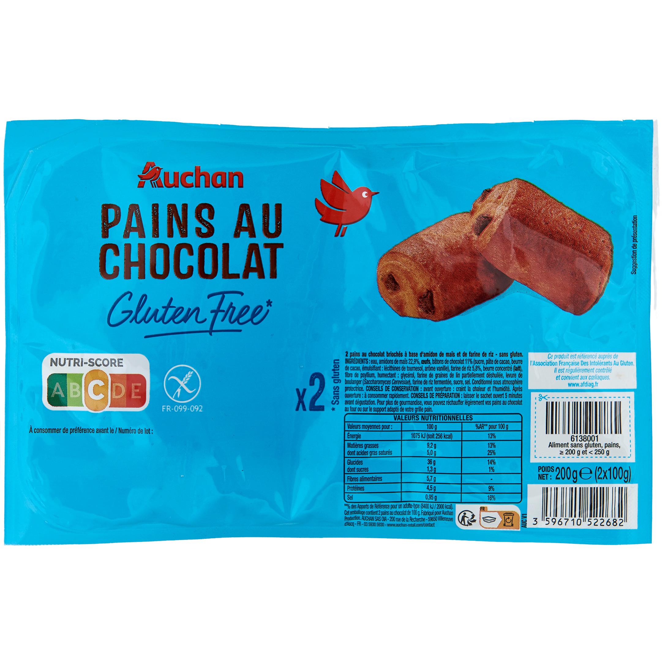 2 pains au chocolat briochés à base d'amidon de maïs et de farine de riz - sans gluten