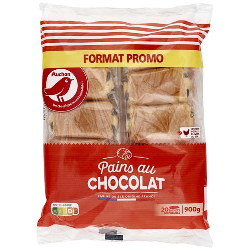 Un classique incontournable! pains au chocolat à base d'oeufs de poules élevées au sol et de farine de blé origine France. 20 sachets individuels
