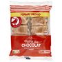 Ingrédients : Farine de BLÉ 46.5% (BLÉ origine France), graisse de palme, chocolat 13% (sucre, pâte de cacao¹, beurre de cacao¹, émulsifiant : lécithines (SOJA), arôme naturel de vanille), eau, sucre, beurre concentré (contient LAIT), arômes naturels (contient Alcool), levure, sel, poudre de LAIT écrémé, gluten de BLÉ, fibre de pomme de terre, émulsifiant : mono- et diglycérides d’acides gras, farine de SEIGLE, colorant : caroténoïdes, antioxydant : acide ascorbique, ŒUFS*. ¹Certifié Rainforest Alliance. En savoir plus sur ww.ra.org Traces éventuelles de fruits à coque si le numéro de lot contient les lettres \"CA\"