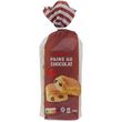 Ingrédients : Farine de BLÉ 41%, matière grasse de palme, chocolat 13,5% (sucre, pâte de cacao, beurre de cacao, émulsifiant : lécithines, arôme naturel de vanille), levain (eau, farine de BLÉ 4%, farine de SEIGLE, levures), eau, sucre, ŒUFS entiers* 2,7%, beurre (LAIT) concentré, levure, poudre de LAIT écrémé, sel, émulsifiant : mono- et diglycérides d'acides gras, gluten de BLÉ, arôme naturel de vanille (contient alcool), agent de traitement de la farine: acide ascorbique, colorant : caroténoïdes. Traces éventuelles de soja. *Issus de poules élevées au sol.