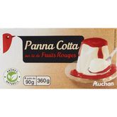 Avec la Panna Cotta sur lit de Fruits rouges Auchan, savourez un délicieux dessert d'inspiration italienne sur coulis de framboise, fraise et mûre, fabriqué avec du lait origine France.