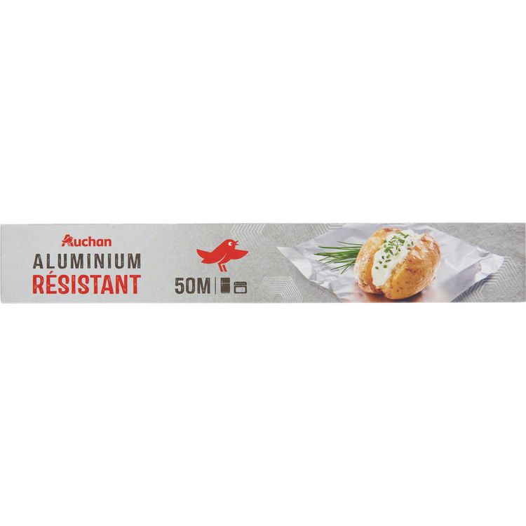 Papier pas très épais mais résistant, fait son job sans problème. Emballage permettant de faire des découpes nettes du papier d'aluminium.