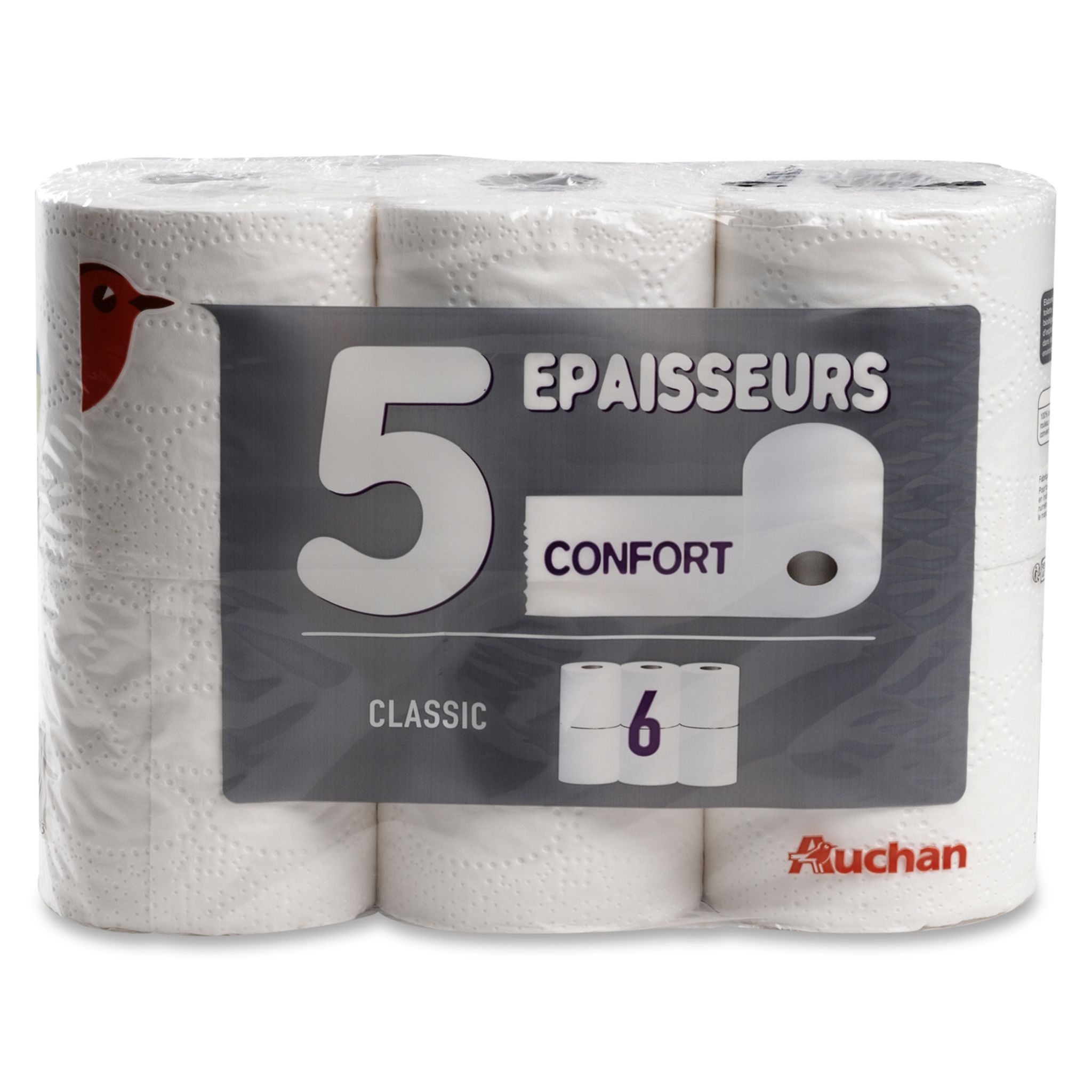 AUCHAN PAPIER HYGIENIQUE 5 PLIS CARE 90 feuilles X6