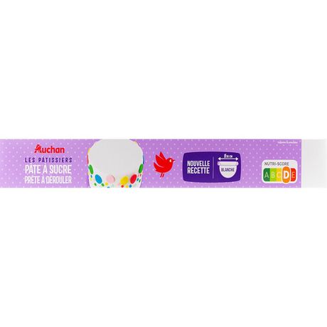 :La pâte à sucre prête à dérouler Auchan de 36 cm de diamètre vous permet de recouvrir par exemple : - un gâteau rond de 15 cm de diamètre et de 10 cm de hauteur. - un gâteau rond de 25 cm de diamètre et de 5 cm de hauteur. Vous pouvez également l'adapter pour un gâteau carré, rectangulaire ou en forme de cœur. Facile et rapide, elle ne colle pas et ne craque pas.