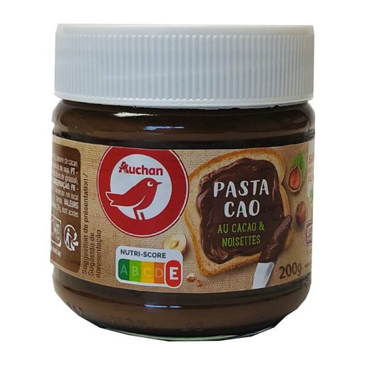 Pâte à tartiner avec 13% noisettes sans huile de palme 200g AUCHAN Pâte à tartiner cacao et noisettes