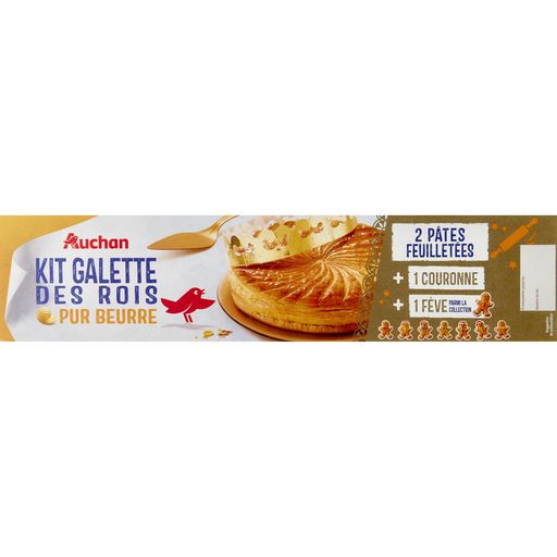 Lot de 2 pâtes feuilletées pur beurre prêtes à dérouler, avec papiers cuisson, 1 fève et 1 couronne