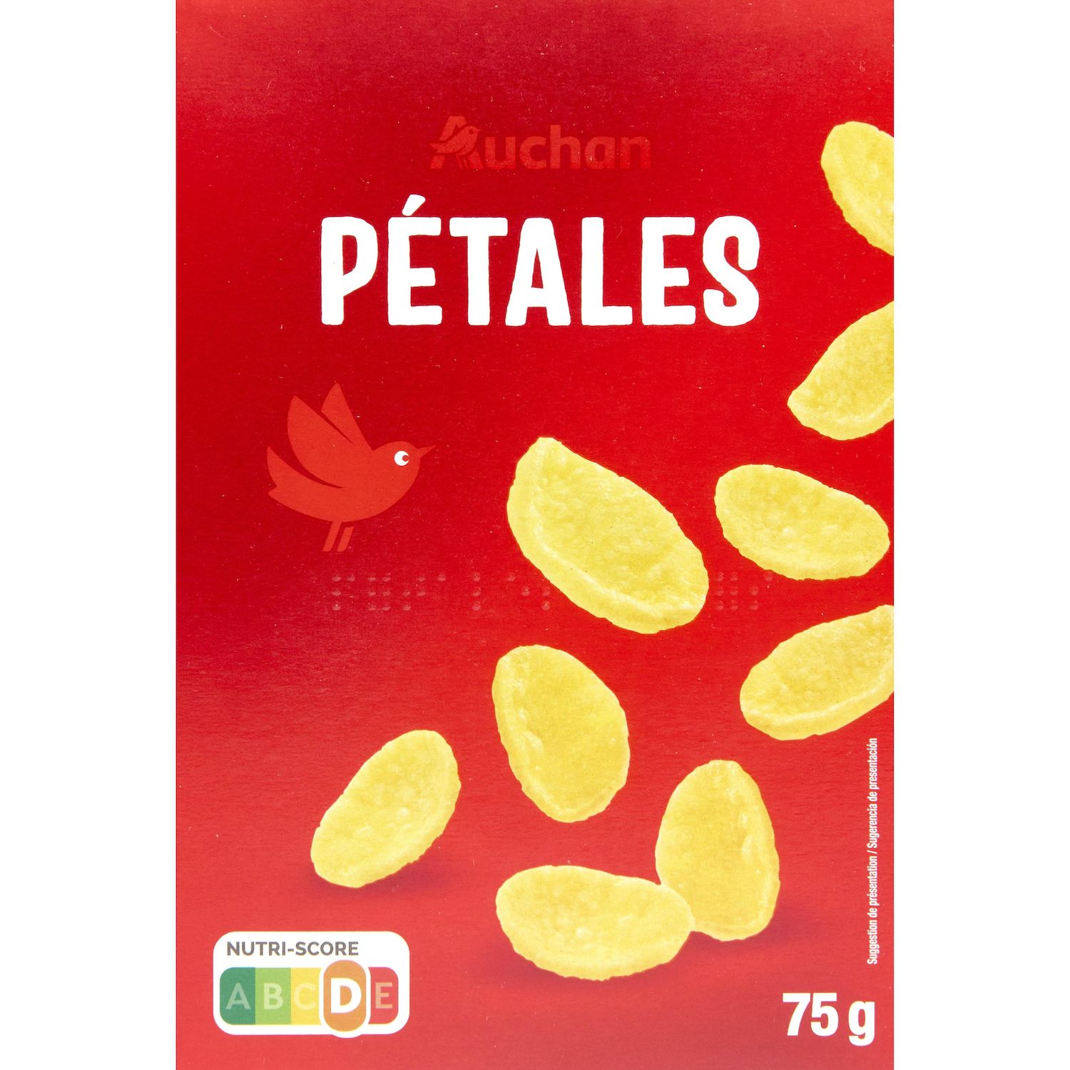 Ingrédients : Pomme de terre déshydratée 37%, amidon de pomme de terre, huile de tournesol, sel 1,5%, curcuma et paprika déshydratés.Traces éventuelles d'arachides, de céréales contenant du gluten, de crustacés et de lait.