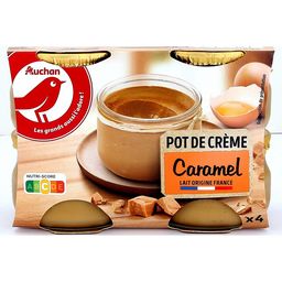 Ingrédients : LAIT entier 57.8%, crème (lAIT) 15.9%, caramel 10.5% (sucre, eau), sucre 6%, ŒUFS entiers 5%, LAIT écrémé en poudre, amidon modifié de manioc caramel 0,3% (sirop de glucose, sucre, eau), épaississants : cellulose, gomme de cellulose arôme, gélifiant : carraghénanes. Traces éventuelles de blé. Elaboré à partir de lait origine France.