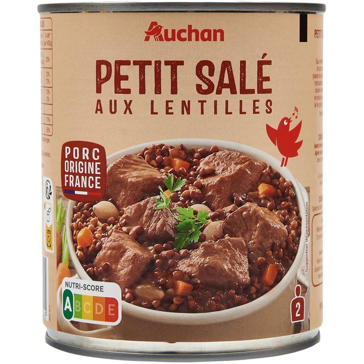 Ce Petit salé aux lentilles de la marque Auchan est très bon et pratique lorsque l'on a pas le temps de cuisiner.