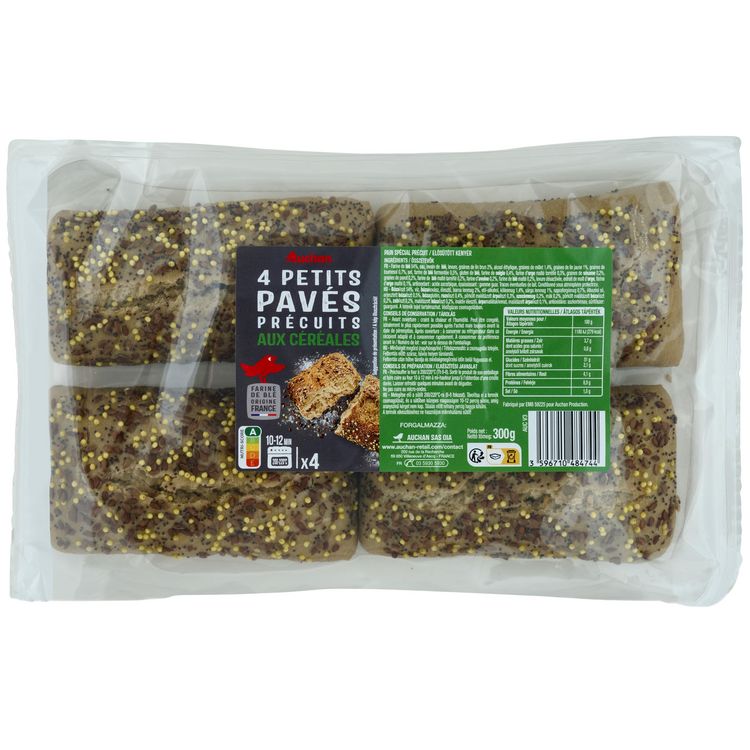 4 petits pavés précuits aux céréales et à la farine de blé origine France