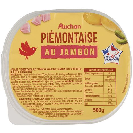 Bonjour, Nous sommes désolés d'apprendre que votre expérience avec la piémontaise au jambon ne soit pas à la hauteur de vos attentes. Nous alertons notre service pour procéder à un contrôle. En tout cas, nous sommes ravis que l'emballage soit pratique pour une conservation optimale. A bientôt chez Auchan