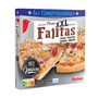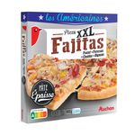Ingrédients : farine de BLÉ, eau, émincé de poulet traité en salaison 10% [viande de poulet 9 % (origine France), eau, fécule, dextrose, sel, gélifiant : carraghénanes], poivrons 7% (poivrons rouges et jaunes), cheddar 5% (LAIT origine UE),concentré de tomates, oignons 4,5% (oignons, oignons rouges), mozzarella 3% (LAIT origine UE), fromage blanc (LAIT origine UE), huile de colza, levure boulangère, sucre, sel poudres à lever :diphosphate disodique, carbonate acide de sodium amidon de BLÉ, ail, amidon, purée de piments (piments, sel), cumin, coriandre, persil, épices barbecue, origan. Pourcentages exprimés sur le total de la recette. Traces éventuelles de poisson, crustacés, mollusques, œuf, moutarde et céleri.