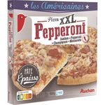 Pizza à base de jambon cuit, pepperoni cru, champignons et mozzarella, surgelée