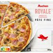 Pizza à base de jambon cuit, champignons, edam et mozzarella, surgelée.