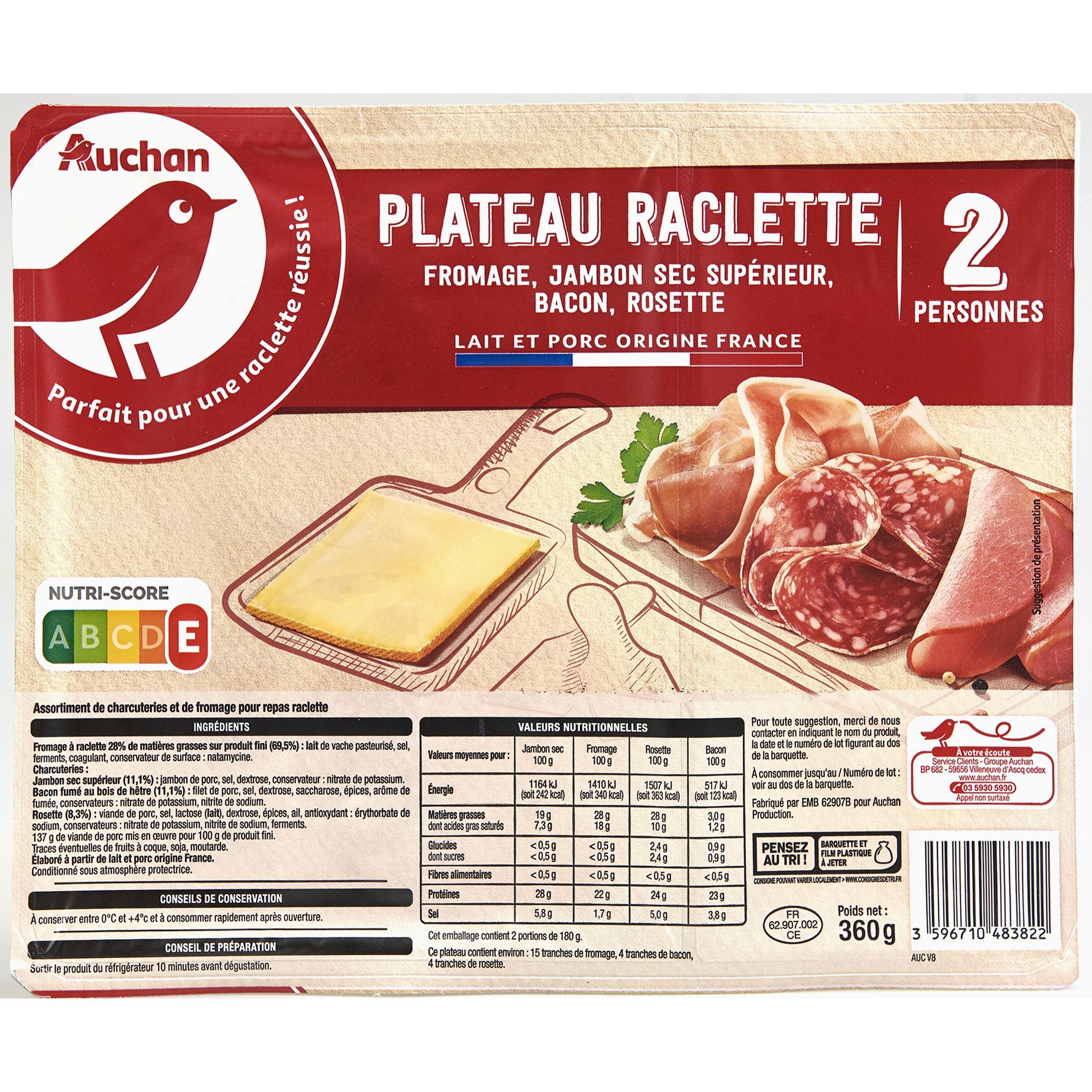 Plateau Raclette fromage et charcuteries jambon sec, bacon et rosette