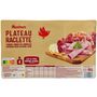 Ingrédients : Fromage à raclette 28% de matières grasses sur produit fini (56,25% ): LAIT de vache pasteurisé, sel, ferments, coagulant, conservateur de surface : natamycine. Charcuteries: Jambon cuit choix découenné dégraissé (20%) : jambon de porc, acidifiant : lactate de potassium sel, sirop de glucose, dextrose, antioxydant : érythorbate de sodium, conservateur : nitrite de sodium, arôme. Jambon sec supérieur (10%) : jambon de porc, sel, dextrose, conservateur : nitrate de potassium. Miche au poivre (10%) : Viande de porc, sel, lactose (LAIT), dextrose, poivre noir en grain 0,3%, épices, ail, antioxydant : érythorbate de sodium conservateurs : nitrate de potassium, nitrite de sodium, ferments. 132g de viande de porc mis en œuvre pour 100g de produit fini. Pourcentage de poivre exprimé sur la recette de la miche au poivre. Coppa (3.75%) : Echine de porc, sel, dextrose, saccharose, antioxydant : ascorbate de sodium conservateurs : nitrate de potassium, nitrite de sodium arômes naturels, plantes aromatiques, épices. Traces éventuelles de fruits à coque, soja, céleri, moutarde. Elaboré à partir de lait et porc origine France.
