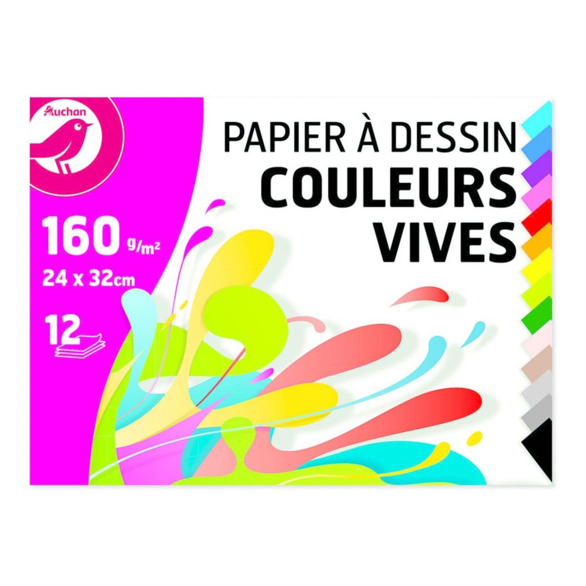 Pochette de papier à dessin à grain 12 feuilles 24x32cm 160g/m2 couleurs vives