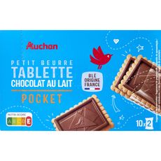 Craquez pour AUCHAN PETIT BEURRE TABLETTE CHOCOLAT AU LAIT POCKET 250G, la gourmandise nomade idéale pour une pause plaisir à tout moment. Retrouvez le croustillant du Petit Beurre associé à la douceur fondante d'une généreuse tablette de chocolat au lait, le tout en format pocket pratique à emporter partout.