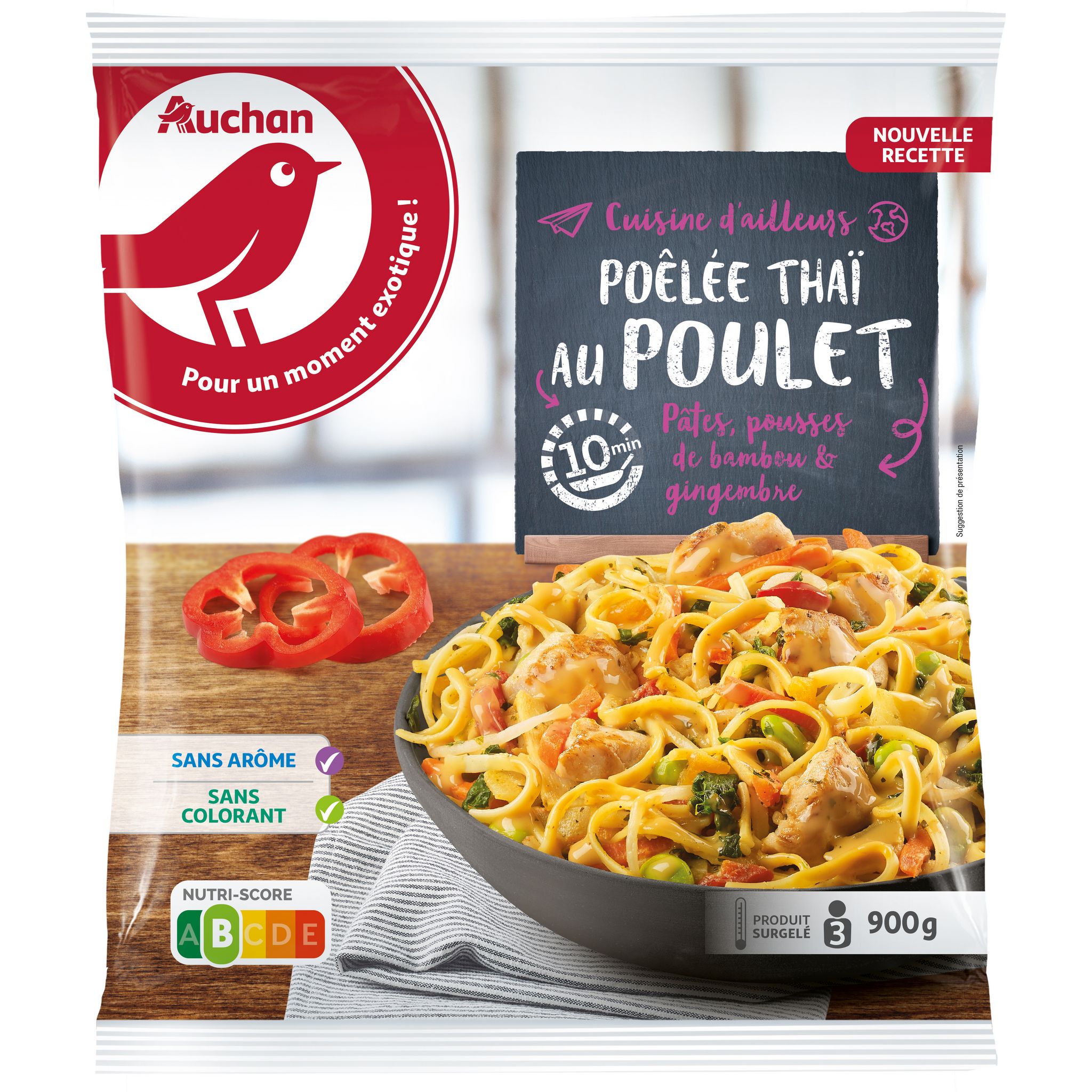 Bonjour, Merci d'avoir partagé votre avis sur notre Poêlée thaï au poulet AUCHAN (3 portions, 900g). Nous sommes heureux d'apprendre que vous trouvez notre poêlée honorable pour un repas rapide et que vous l'appréciez avec des nems en entrée. Votre retour est important pour nous, car il nous aide à améliorer la qualité de nos produits. Bien cordialement.