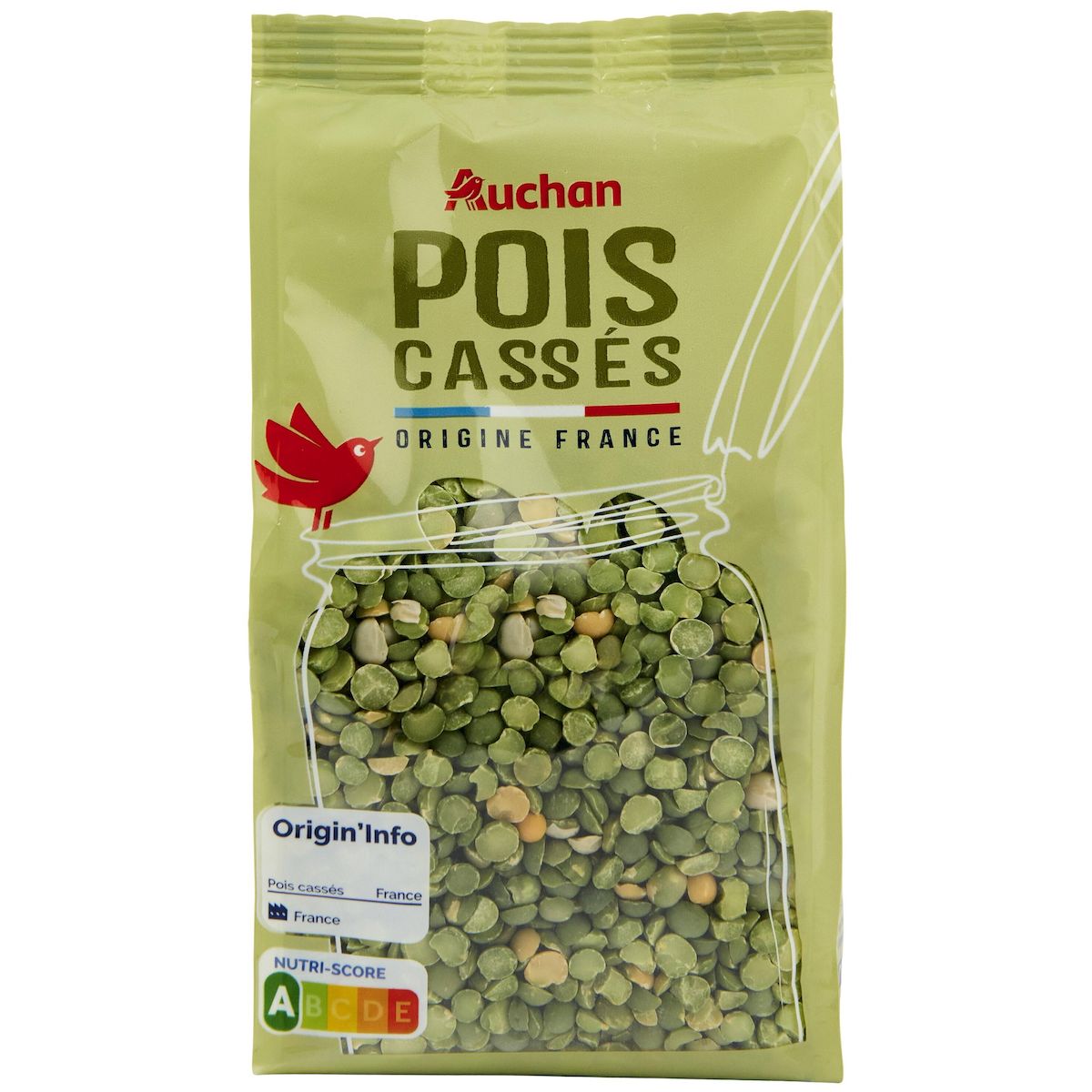 :Rinçage : à l’eau froide Trempage : 1 heure minimum dans de l’eau froide puis vider l’eau de trempage et rincer les pois cassés.CUISSON : A la casseroleDémarrage : 1 Vol de pois pour 5 Vol d’eau froide Cuisson : Après ébullition, 1h environ à feu douxA l'autocuiseurDémarrage : 1 Vol de pois pour 5 Vol d’eau froide Cuisson : Après chuchotement de la soupape, 30 minutes à feu douxSalage : en fin de cuissonEgouttageAstuces : Ajustez le temps de cuisson et la quantité d'eau si nécessaire.Pour des pois cassés encore plus savoureux, ajoutez de l’ail, de l’oignon ou un bouquet garni en début de cuisson.Idées recettes : Envie d’une purée, ajoutez des pommes de terre, des oignons et des lardons fumés à vos pois cassés. Cette purée accompagnera très bien de la volaille ou des saucisses. Envie d’une soupe, les pois cassés sont délicieux associés à des carottes et du lard fumé.