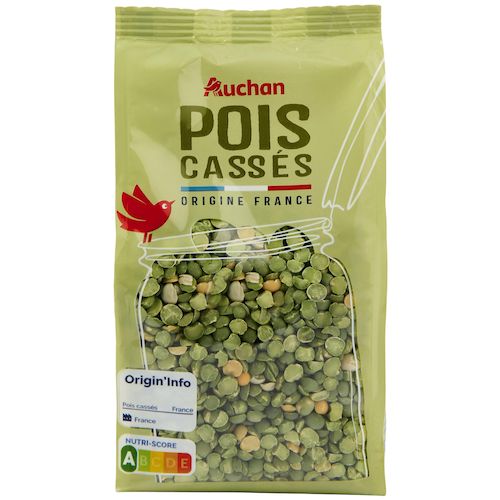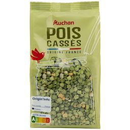 Ingrédients : Pois cassés.Traces éventuelles de fruits à coque, arachides, graines de sésame et céréales contenant du gluten.