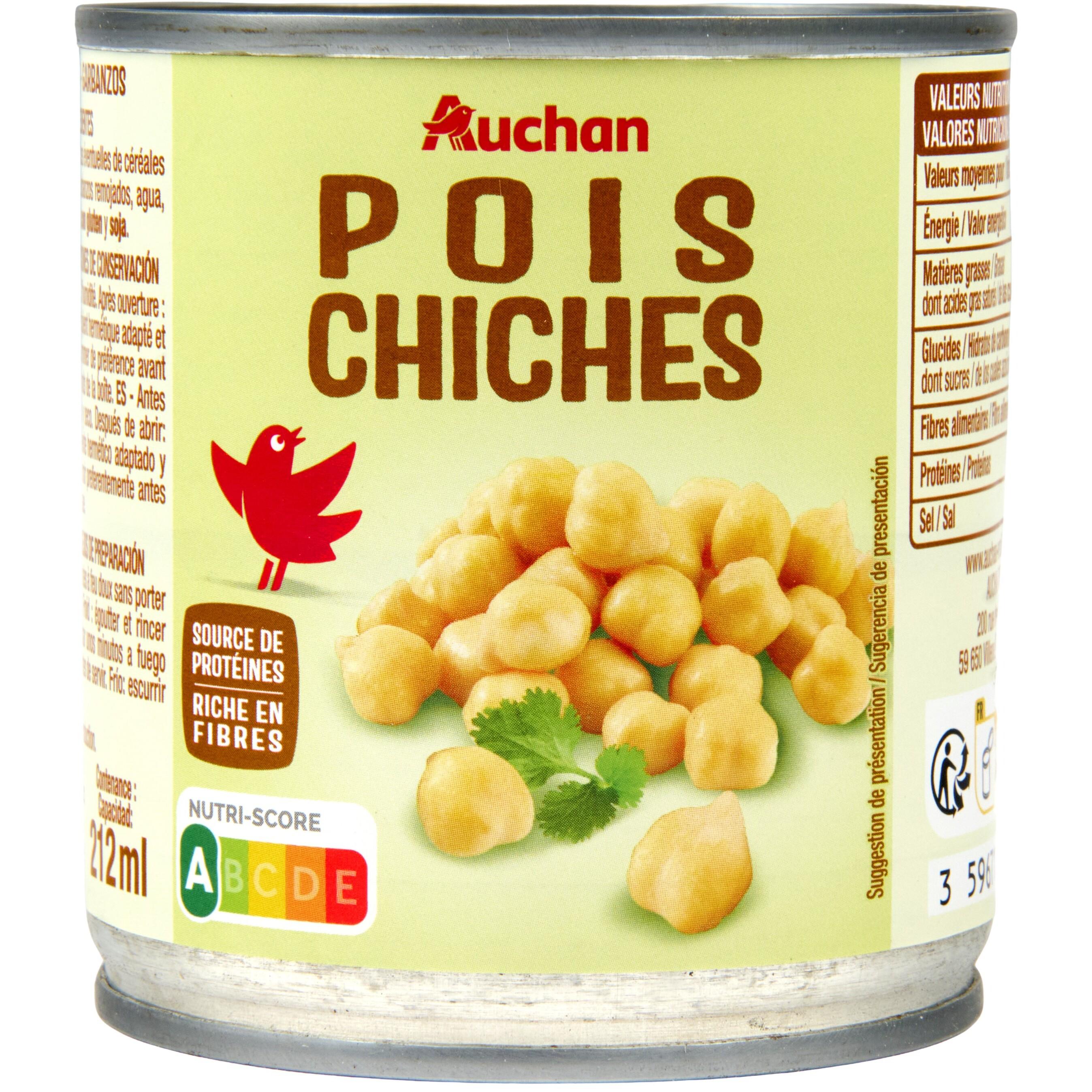 Ingrédients : Pois chiches trempés, eau, sel. Traces éventuelles de céréales contenant du gluten et de soja.