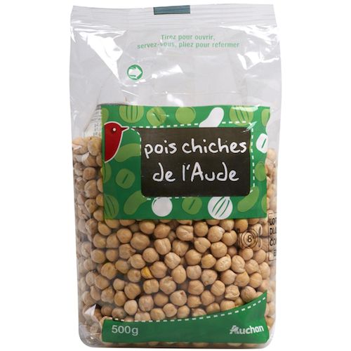 Ingrédients : Pois chiches.Traces éventuelles de céréales contenant du gluten.