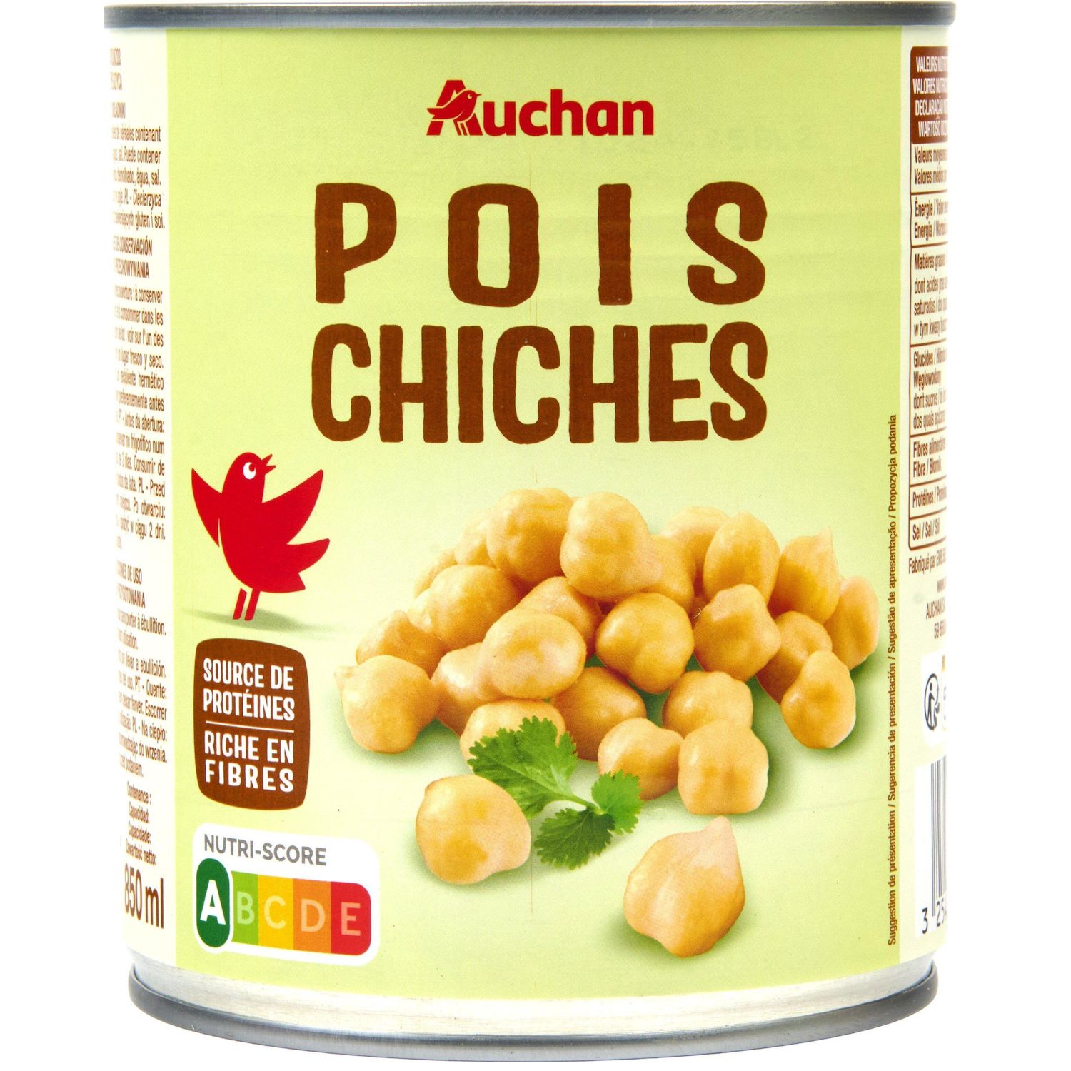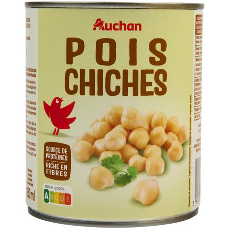 Ingrédients : Pois chiches trempés, eau, sel. Traces éventuelles de céréales contenant du gluten et de soja.