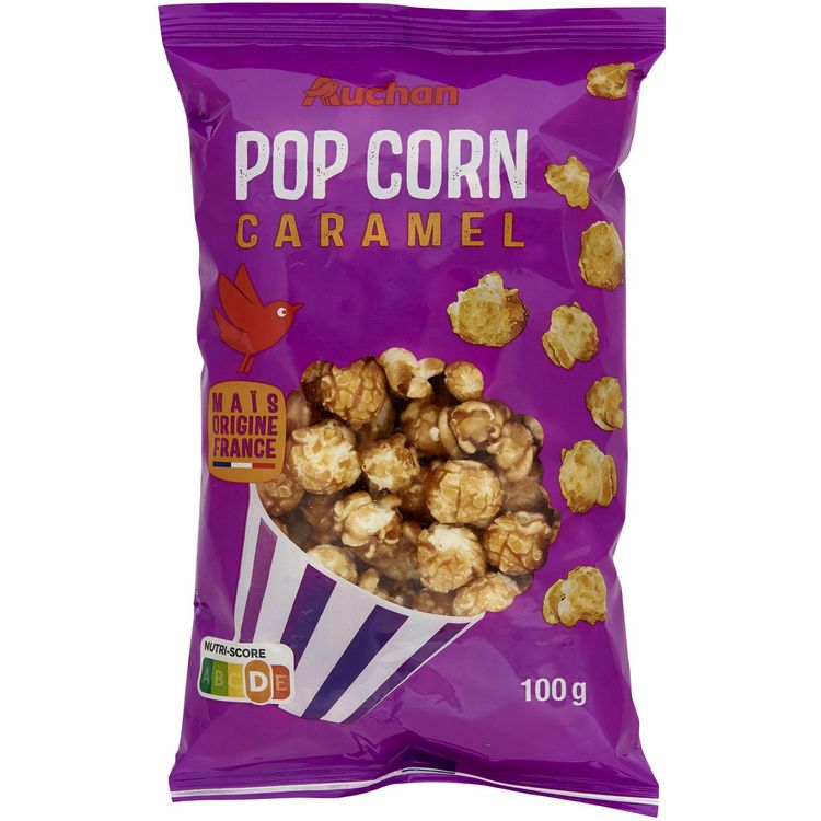 Ingrédients : Caramel 73% (sirop de glucose-fructose, sucre, caramel aromatique au beurre salé (LAIT) (sirop de glucose-fructose, sucre, beurre salé (LAIT), eau), beurre (LAIT), LAIT entier concentré, colorant: caramel ordinaire, poudre de LAIT écrémé, sel), maïs 23%, huile végétale de tournesol (dont antioxydant : extrait riche en tocophérols émulsifiant: lécithine de tournesol). Élaboré à partir de maïs et de lait origine France. Ne pas laisser à la portée des bébés et des jeunes enfants.