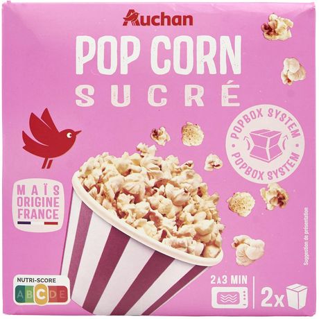 Préparation:1. Tirez sur les deux languettes pour former complètement la Pop'box.2. Placez la Pop'box au centre de votre four à micro-ondes. Temps de cuisson : 2 à 3 minutes selon la puissance de votre four à micro-ondes. Il est conseillé de surveiller la cuisson : écoutez les grains éclater et arrêtez le four à micro-ondes lorsque le bruit d'éclatement ralentit à 2 ou 3 secondes d'intervalle.3. Sortez la Pop'box avec précaution en utilisant les deux languettes. Ouvrez la Pop'box, enlevez le film protecteur et dégustez ! Attention le contenu est chaud.ATTENTION : Ne laissez pas l'appareil sans surveillance. Ne laissez pas les enfants préparer la pop'box sans la présence d'un adulte.N'utilisez pas la pop'box dans un four traditionnel. Enlevez la fonction grill du four à micro-ondes. Il n'est pas recommandé d'utiliser la pop'box dans un four à micro-ondes sans plateau tournant. Ne posez qu'une seule pop'box sur le plateau du four à micro-ondes.Un dépliage incomplet de la pop'box et un dépassement de temps de cuisson peuvent entraîner une diminution de la quantité de popcorn et un début de carbonisation du popcorn.Puissance micro-ondes 700W - Temps de cuisson approximatifs 2.5 à 3 minutesPuissance micro-ondes 800W - Temps de cuisson approximatifs 2 à 3 minutesPuissance micro-ondes 900/1000W - Temps de cuisson approximatifs 2 à 2.5 minutes
