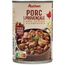 Viande de porc traitée en salaison et précuite accompagnée d'une sauce aux légumes, plantes aromatiques et huile d'olive vierge 0.9%.