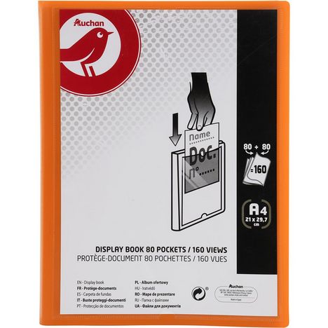 Ce protège-documents protège efficacement vos documents tout en assurant une présentation soignée ! Sa couverture en PVC souple avec pochette de présentation préserve le contenu de la poussière et de l’humidité, et ses 80 pochettes en polypropylène lisse permettent une bonne lisibilité. Dimensions 23,5 x 31,5 cm. Existe en différents coloris.